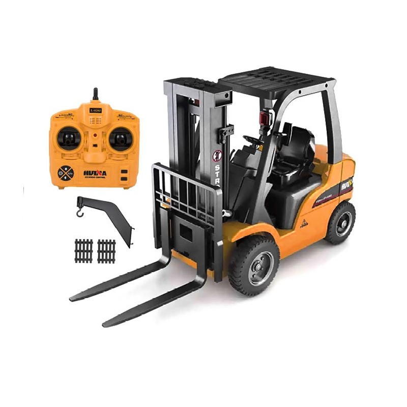 Gaffeltrucken har 7 separate funktioner. Og med 2,4 GHz teknologien er det muligt at køre flere fjernstyrede maskiner samtidigt.