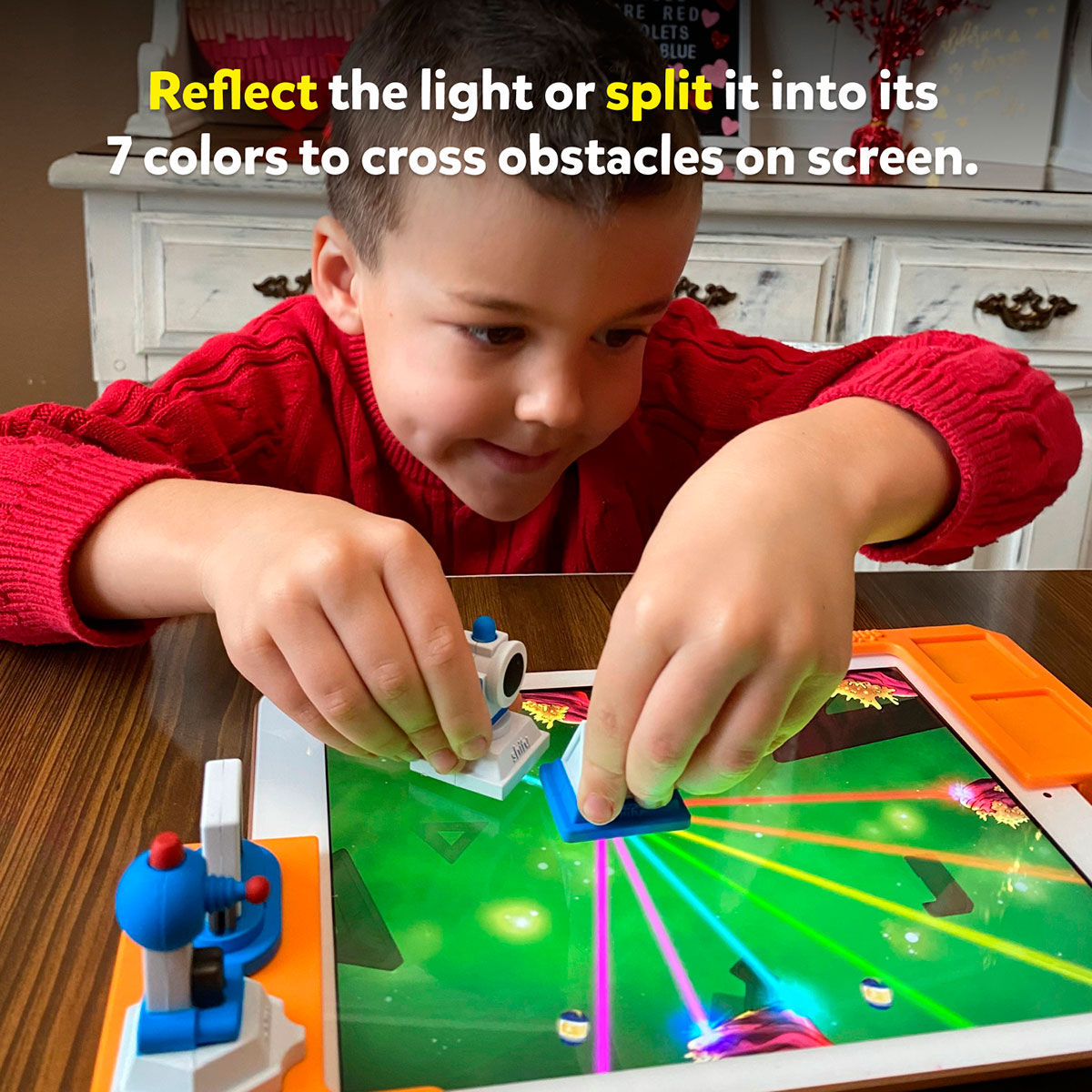 Brug lys og spejlteknik, til at oplyse målet. Opdel lyset i 7 farver, ved at bruge prismet og brug farverne til at løse opgaverne.